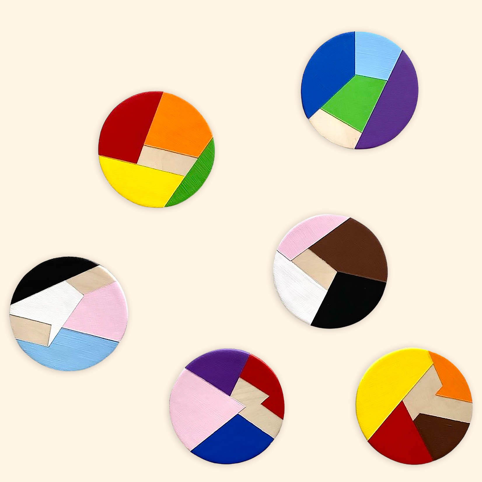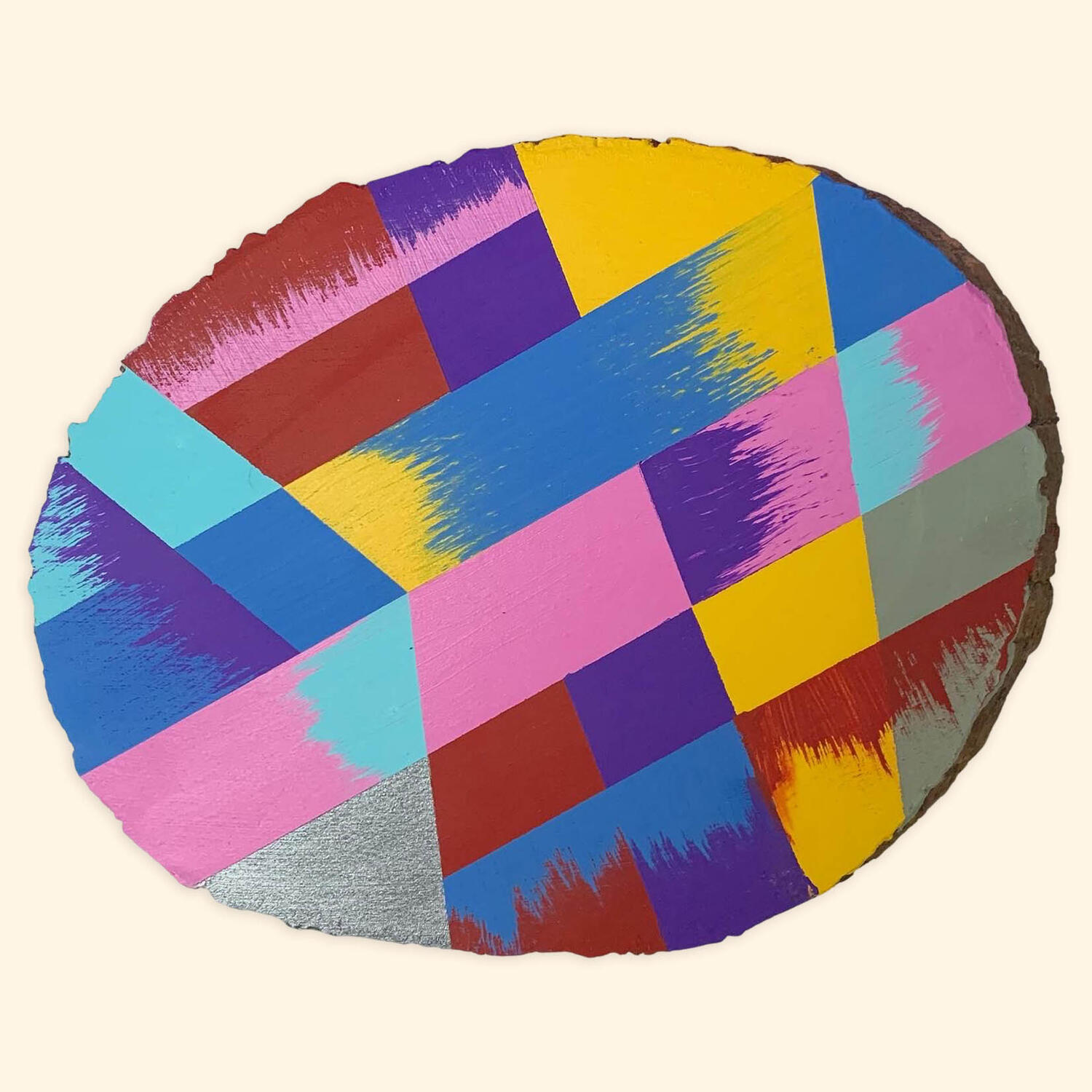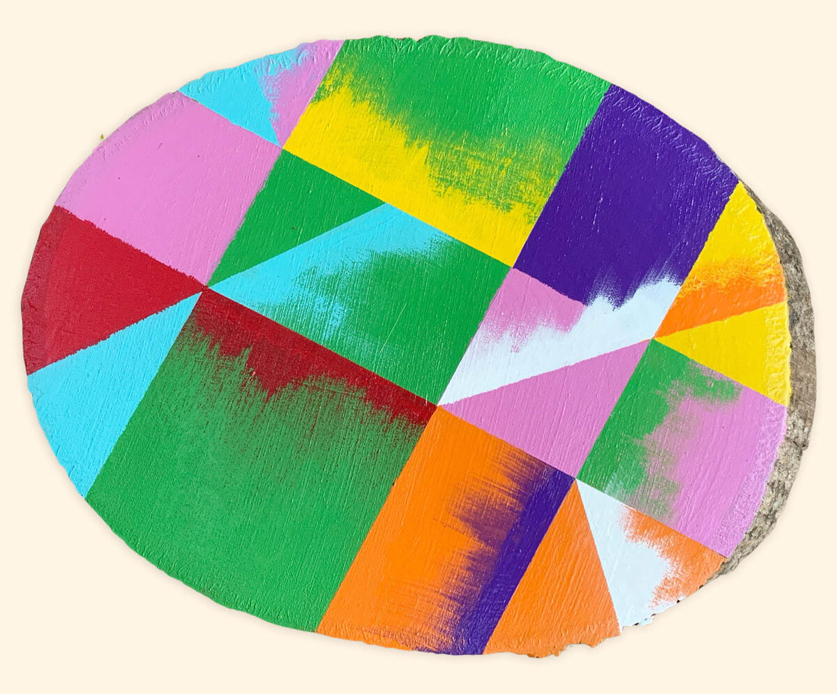 RJ's vibrant, handmade wood arts evoke an interplay between abstraction and decoration. The artworks often relax the mind and recall the joyful moments. He is also captivating arrangements of diverse geometric forms and gradations of vivid color.