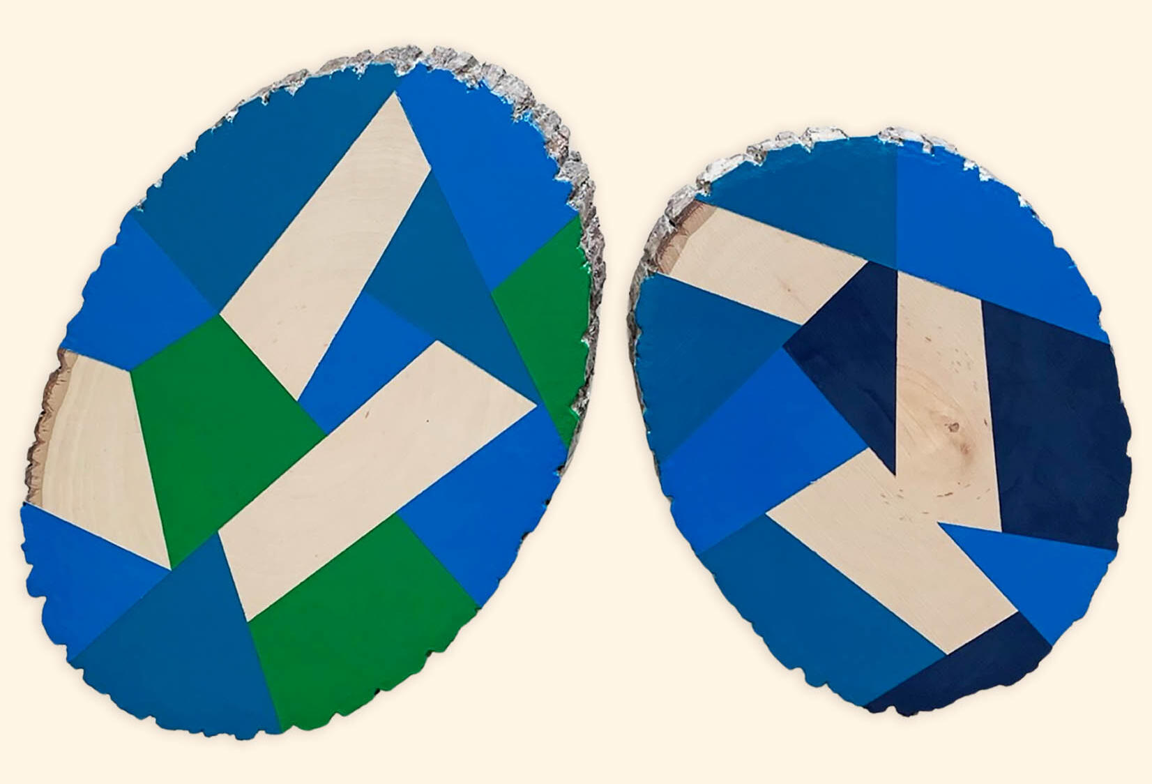 January 2021. Spot Gloss Finish. Two Medium Wooden Tree Rounds.